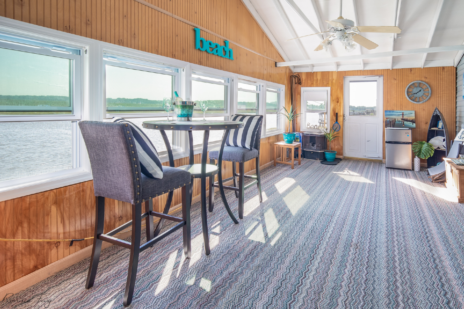 Take advantage of board games and plenty of TVs for streaming your favorite shows inside, and, outside, yard games and a bay front fire pit await, just off the comfortable deck where you’ll want to spend hours with friends & family.