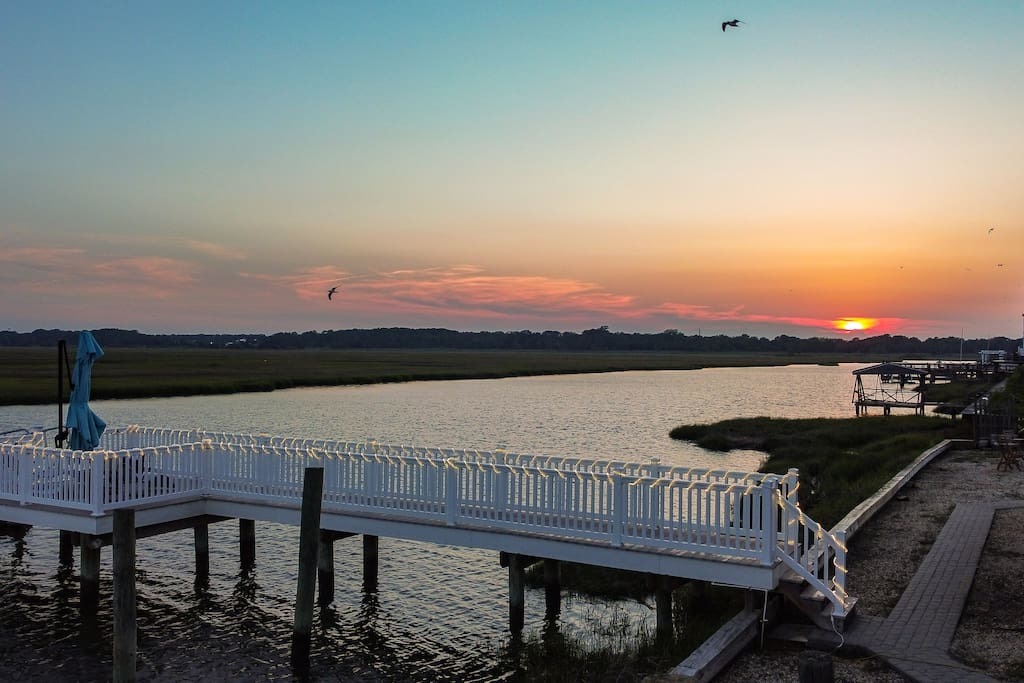 “This lovely home has everything you need for a true getaway from the hustle bustle of daily life! A well-appointed kitchen offers everything from quality dishes and pots and pans to cook a meal at home, to a blender for whipping up margaritas to enjoy by sunset! Or if you don't feel like cooking, phenomenal seafood is right next door. The owners also generously provide two kayaks for exploring the marsh and a creek mat for sunbathing and water games. When the tide was high, it was deep enough to swim and even bring in a pontoon boat (we rented from Dad's Marina) and at low tide, the wildlife puts on a show providing a birder's paradise. Our boys also had a blast crabbing and mucking around in the mud! Stone Harbor Beach, restaurants and shops are just down the road, so whatever you are looking for, it's a great location. The house is decievingly large with three good sized bedrooms, two full bathrooms and lots of living space. I would absolutely stay again, as "Back Bay Bliss" was exactly that!”