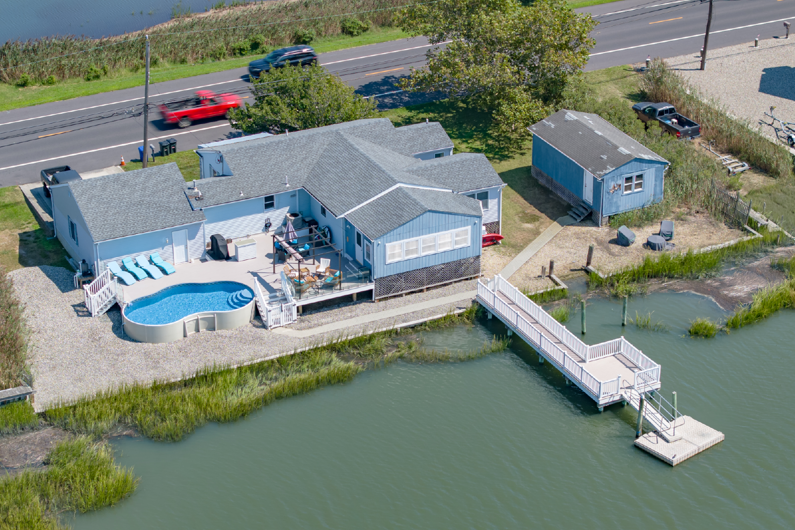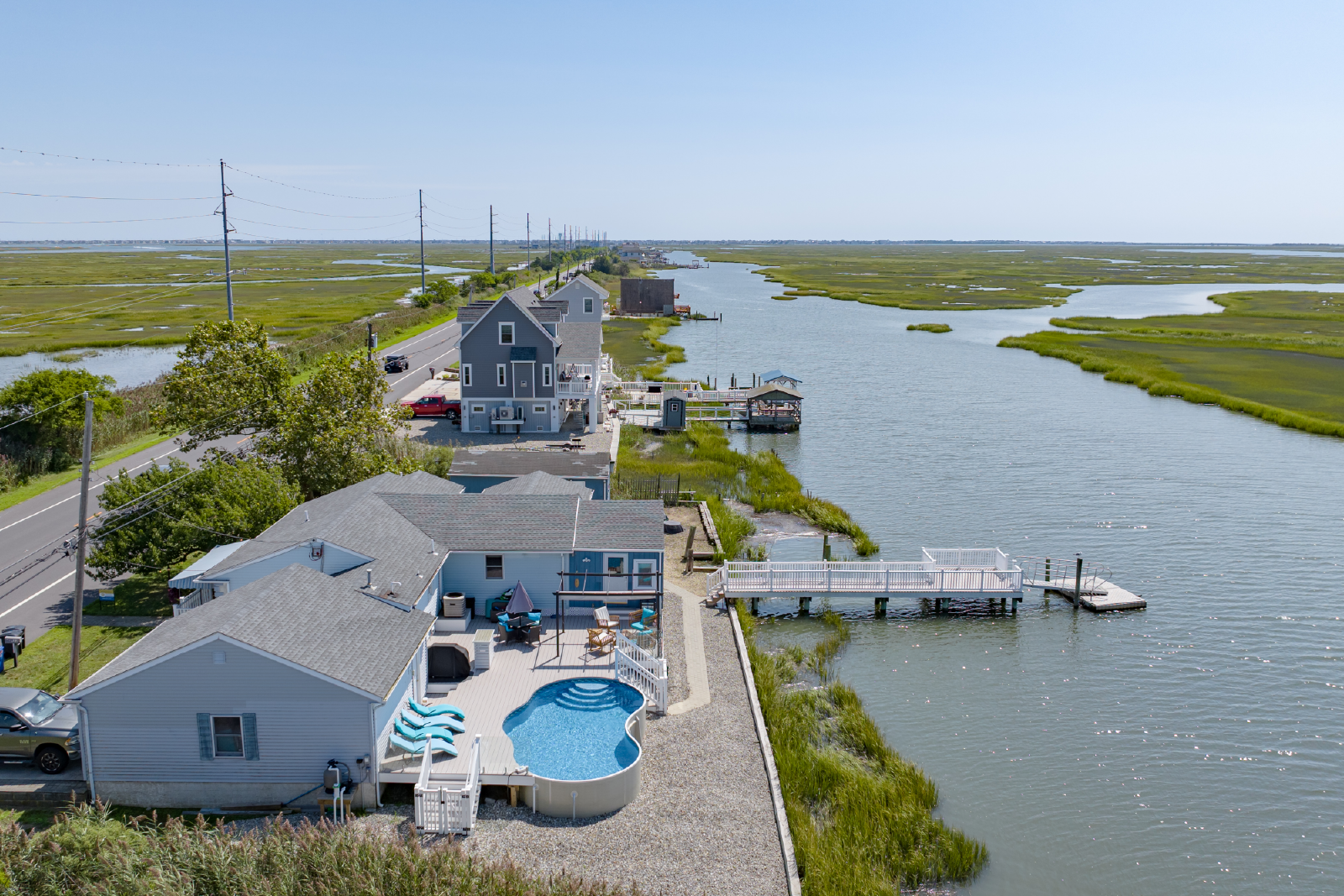 PMI Saltwater proudly offers Back Bay Bliss! This renovated 3 bedroom, 2 bathroom BAY FRONT vacation oasis has a new pool (completed in 2022)! This 2,100 square foot single-family home is loaded with amenities, including a well-stocked kitchen and furnished bay front deck. Soak in the million-dollar waterfront views from your private dock, spacious deck, and large sunroom.