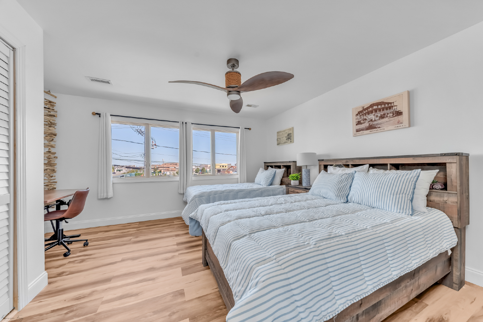 You're a short walk to all the restaurants, shops and activities Avalon has to offer, and just 4 blocks to the beautiful beaches. This 5 bedroom, 4 bathroom home (plus an awesome outdoor shower) boasts memorable decor and amenities. From spa-like showers, to a well-stocked new kitchen - and spacious bedrooms to accommodate 12 guests...BayDream is a perfect backdrop for your memorable shore vacation.