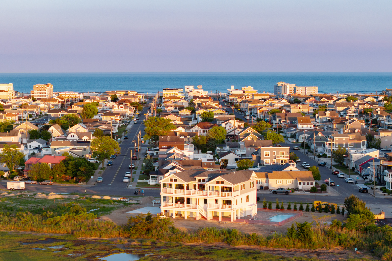Tramonto, meaning “Sunset” in Italian, is a spacious, luxury custom home with serene panoramic views of the bay and Sunset Lake in Wildwood Crest. The home offers 6 bedrooms, 5 full and 2 half baths, and a heated in-ground pool surrounded by a large fenced in yard on a private spacious corner lot. Tramonto is perfectly located for your multi-family vacation in a quiet, family-friendly neighborhood. Enjoy being 4 blocks from the vast Wildwood Crest beach, next to Sunset Lake park which offers jet ski and paddle board rentals, walking distance to local coffee shops and restaurants, and a short drive to either Cape May for shopping and fine dining, or to the Wildwood boardwalk for endless amounts of fun.