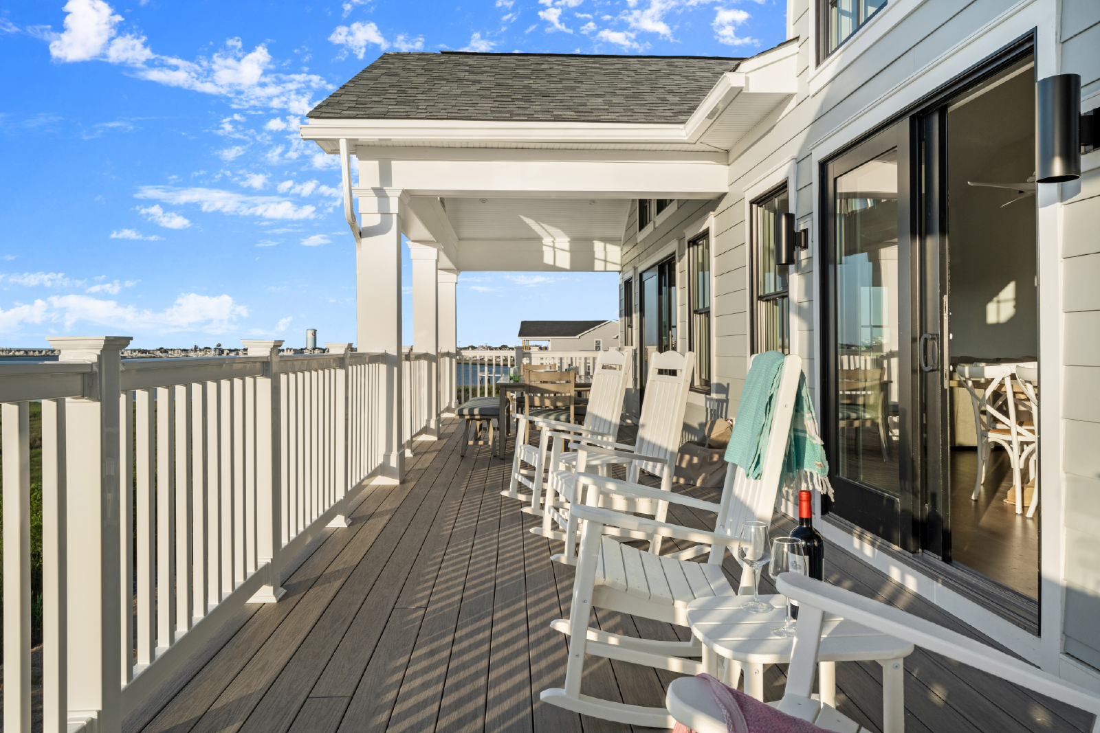The second floor features an open floor plan, a gourmet kitchen with premium appliances, cathedral ceilings, large windows and sliding glass doors, a powder room, and TWO spacious primary bedroom suites. You’ll be able to enjoy beautiful sunsets on a spacious deck with panoramic views featuring a covered lounge area, a sundeck, and a separate covered dining area to soak in the stunning views.